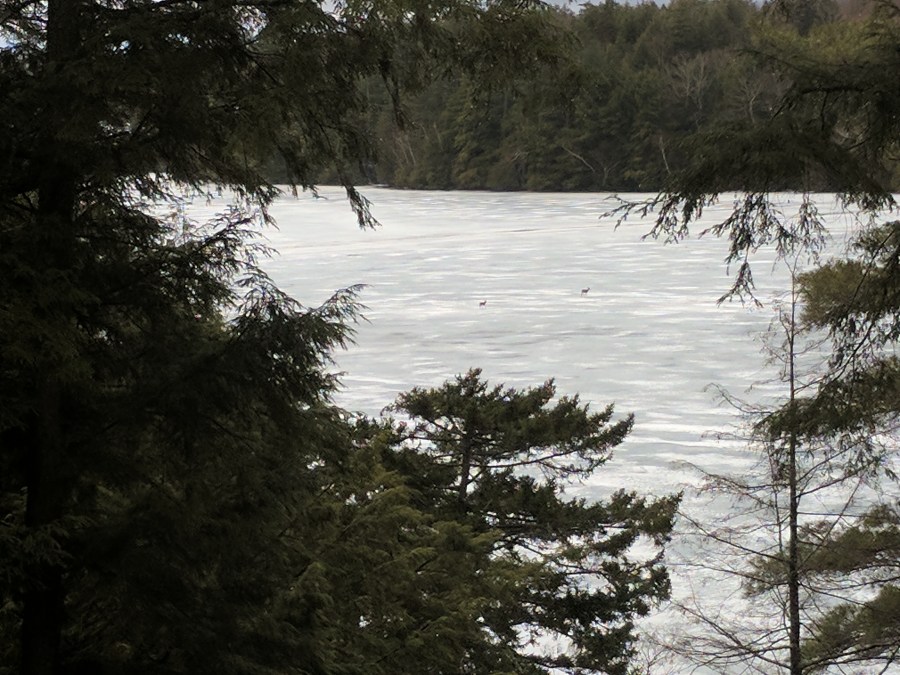 More unpacking and squeezing 2 houses into one. The ‘one’ is a lovely cabin in the woods, Midway between Saranac Lake and Tupper Lake, NY. Today I saw at least 3 groups of 3 or 4 deer crossing the lake on ice I didn’t think would support a human much less a tip toey 4 legged creature. No one here would come to the rescue if they fell in, unlike in Waltham or Boston. More likely venison stew would be on the menu for dinner. Ah, the North Country. We’re going out soon to accumulate more cash (gotta join a local bank soon), hit the hardware store because why not? And probably go to another brewery for dinner. I guess I’ll have to start cooking something sooner or later. But it won’t be venison.
