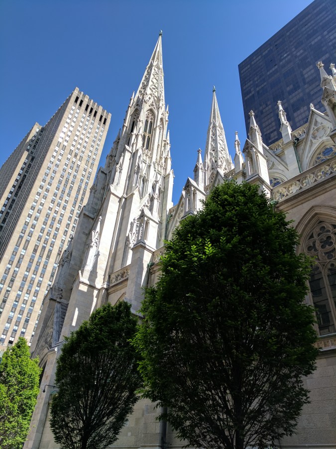Sunday morning we went to St Patrick’s Cathedral for Mass; the Cantor had an amazing voice and the organ music was majestic. We headed over to Chelsea for breakfast including beignets, followed by some golf practice at the driving range at Chelsea Piers. We meandered the paths along the Hudson on this sunny day and even napped a bit on the grass, the three of us spread out in picnic crime scene fashion. After sleeping off the rest of the previous night’s hangover, we headed up to the Ninth St food festival, opting for lunch in an open air restaurant, Arial, over the street food. I loved the tuna tartare, and Greg resolved to perfect his own carbonara recipe upon finishing his lunch. We headed back to the hotel, exhausted from all the walking and Christina went home to do some lab work (or, I suspect, she needed more parental break time). We met up at Sojourn in the Upper East Side for our final gourmet meal and just a little more wine. We saw Christina back to her building and we called it a night.