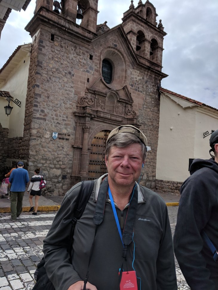 After enjoying the sumptuous breakfast buffet with live guitarist, we headed out for a walking tour of Cusco. A short, cobblestoned block away was the central square. We toured the Cusco cathedral which rivalled many in Europe. Of course there was Spanish influence. The gold and silver ornate altars were outstanding. Although the Inca used these precious metals they did not regard it’s value as did the Spanish, to their detriment. One relic of note: a Catholic priest and his translator were the first to approach the Inca on behalf of Francisco Pizarro and Spain. When the Inca emperor rejected the cross and Bible the priest offered, the Spaniards mowed down the Inca. That cross is located above the altar.