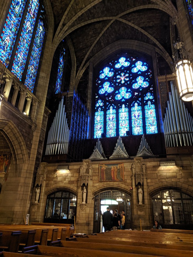 Sunday morning was sunny and gorgeous. I attended Mass at St. Vincent Ferrer parish while Christina went to her lab for a morning mouse bleed. This gothic Catholic church had stunning stained glass windows, a huge pipe organ, and a visiting Dominican men’s choir with soaring voices. A beautiful start to the day and a reminder to “love one another”.