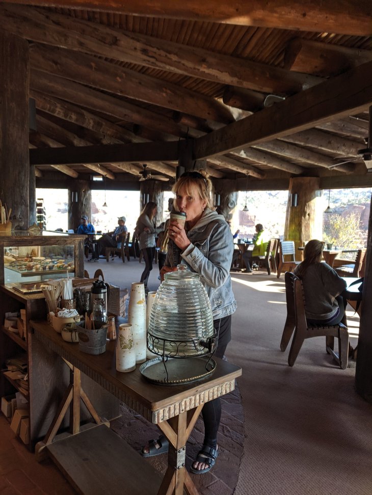 The coffeehouse is set into the side of one of the many cliffs along the many canyons and gorges we drove through.