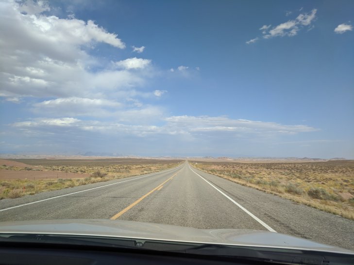 We drove on through the Hanksville area which soon became a landscape of towering grey shale and ‘cement’ piles for miles on end. It looked souless except for the ATV and motocross tracks everywhere. And then it became flat, sage covered desert for miles.