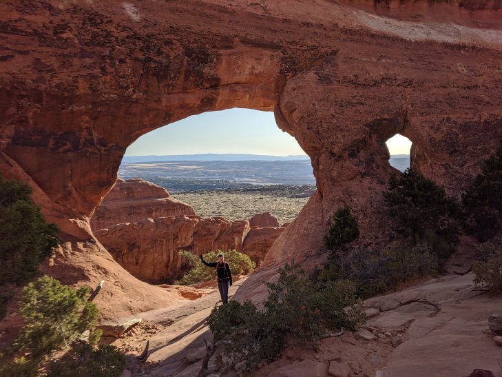Some trip tips:Fiery Furnace permits are available online months ahead. We were lucky to get them only 2 days ahead for our trip but if you want to be sure to do it plan ahead. They cost $6.00 each unless you have the senior pass then they are only $3.00 apiece. This is a strenuous hike in that you have to shimmy, crawl, climb, lift, get lost, and balance on uneven surfaces. And enjoy exploring. Arches National Park is a very accessible park so if you’re not into hiking you can still see a majority of the sights. A few arches are maybe a mile distant from parking lots and most of the trails are packed stone or paved. Some are a little more uneven but all are worth the effort. The longer, primitive trails are definitely harder and often are not well marked. Greg has the Alltrails app on his phone. For a few bucks a month (he got it 50% off so look for a deal) you can download and have remote GPS access to the trail maps even without cell service. With the app you can see the recorded trail and where you are (or are not) on the trail, how far you have gone or have yet to go, elevation, etc. We used it a lot whenever someone (not me!) would ask “are we there yet?” We spent 1.5 days in Arches, 3 nights in Moab, and 0.5 days in Canyonlands which was plenty of time though we didn’t have traffic or crowds. We left on Saturday of Columbus Day weekend (aka Indigenous Peoples Day) and the crowds were definitely building and lines were getting much longer. Again, go into the parks early like before 9:00am and earlier. Canyonlands is also a very accessible park, most of the viewing can be done a few hundred feet from the parking areas or maybe a hike of a mile on slightly uneven terrain. If you go to Upheaval Dome, don’t bother going to the 2nd observation point, the 1st has really good views. Definitely go to Mesa Arch and Grand View but hold onto any child’s hand if they tend to run off (because they literally can ‘run off’!) Moab is a super cool town with lots of hotels and restaurants. We were at dinner on the early side (5:00-5:30) with no waiting for a table but there was usually a 45min wait by 6:00-6:30pm. I don’t know about later because we were usually asleep by 8:00pm (or I was) because of exhaustion. We ate at the Moab Brewery which had good food but not so good beer, the Fiesta Mexicana which had mediocre Mexican food but good margaritas, and Antica Forma, a pizza place, which had great wood-fired pizza and lasagna. I recommend the quirky, quiet Gonzo Inn in Moab. It was a comfortable hotel just off Main Street, walking distance to restaurants and shops and ice cream. The rooms were large (we had suites), the hot tub was hot, breakfast was decent and lowkey, the beds were comfortable with awesome soft sheets, and I did mention the Tootsie Rolls already. There are lots of hotels and camp sites and RV parks nearby.