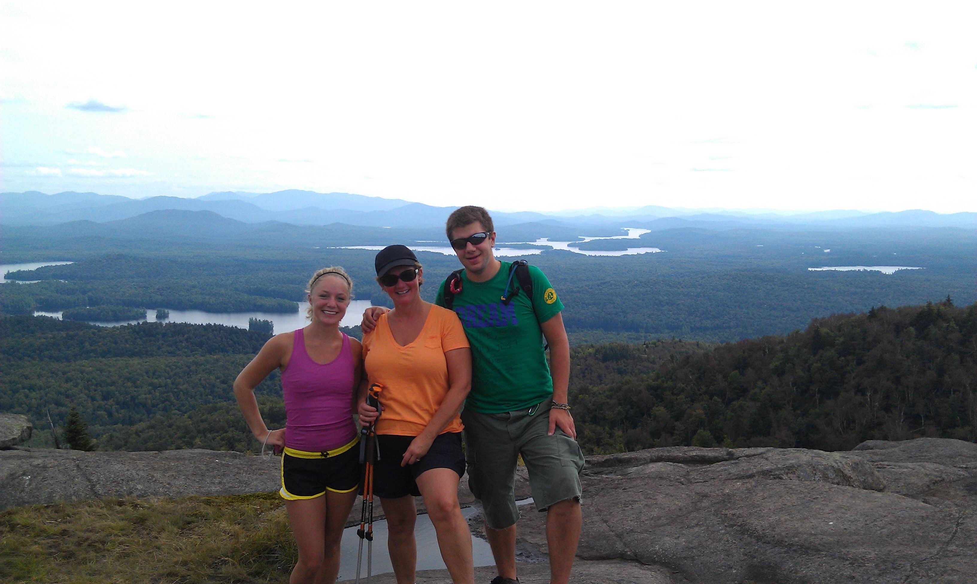 For those of us somewhat normal humans, there are plenty of moderate peaks that can be done in a 1/2 day or less. My favorites: Mt. St. Regis, a lovely 6.2 mile roundtrip hike to a bald peak with a fire tower. You can see the full extent of our lake from the peak; likewise I see the peak from my house. Hurricane Mountain in the High Peaks area, is not a High Peak but from it’s bald apex (also with firetower) you have an unbelievable view of the higher peaks nearby (7 mi RT). Mt. Van Hoevenberg is a nice little hike near LP that takes only 1.5 hr or less to ascend but the views are expansive with the High Peaks in the distance. Closer to Saranac Lake are Haystack (6.6 mi RT), Baker Mountain (1.7 mi RT), and Scarface (7.4 mi RT); these peaks are not bald but the overlooks have great views for the effort. Ampersand Mt. (5 mi RT) is extremely popular and the view is remarkable from the bald peak; unfortunately overuse has caused the trail to become wide and washed out, but still fun and challenging nevertheless. Saranac Lake offers the ‘Saranac 6’ challenge: climb 6 of the moderate peaks nearby, get a badge and ring the bell in the town center! Tupper Lake offers the ‘Tupper Triad’ challenge: climb Mt. Arab (2 mi RT), Goodman Mtn (3 mi RT), and Coney Mtn (2.2 mi RT) and get a badge. These are nice little family hikes that can be done in one day if you are so motivated (or not). Lake Placid offers the ‘Lake Placid 9’ challenge which I am currently working on. Most any mountain hike in the area will have meandering trails that crisscross rivers and small waterfalls and have changing forest environments.