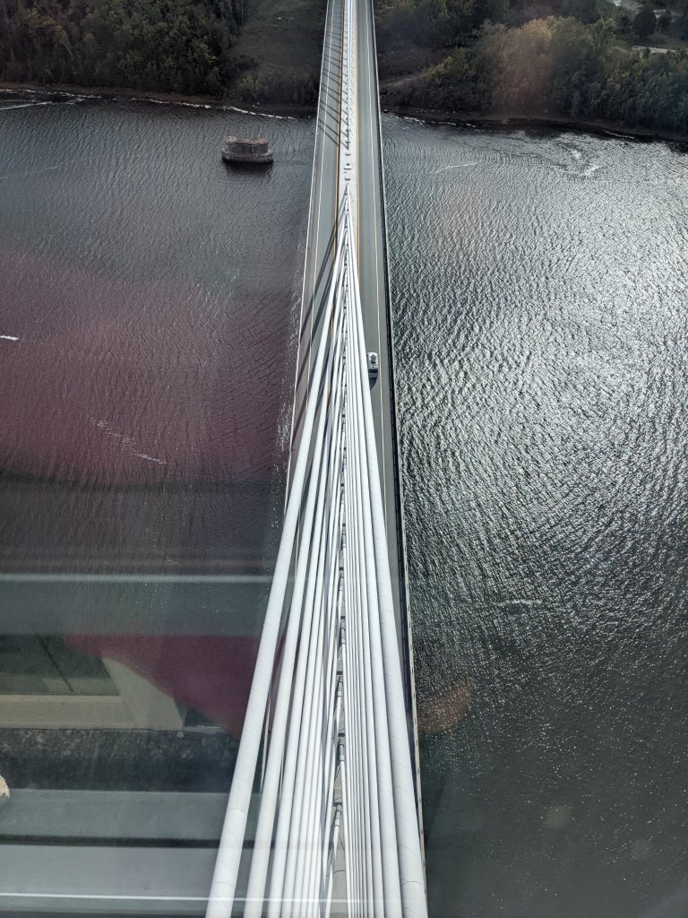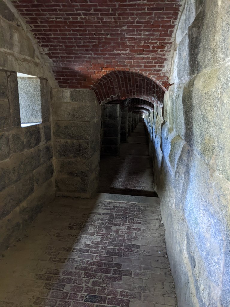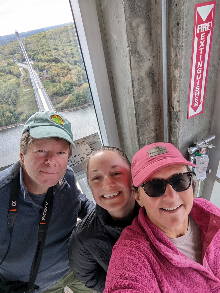 Our return trip from Bar Harbor, ME took us back down Rt. 1, aka the Cannabis Corridor (seriously, more cannabis shops per mile than anywhere ever). Our first stop was Ft. Knox in Prospect, ME. This was a spontaneous right hand turn off Rt. 1 just after crossing the beautiful Penobscot Narrows Bridge. The fort was a fun and informative visit as we explored the various rooms and halls of this mid-nineteenth century fort built shortly after the Spanish American war to protect the citizens on the Penobscot River. Btw, it never saw battle and eventually the cannons were melted down during WWII. The highlight of this stop was visiting the observatory AT THE TOP OF THE BRIDGE!!! It was early in the day, so we had the viewing area to ourselves with great views of the Penobscot River.