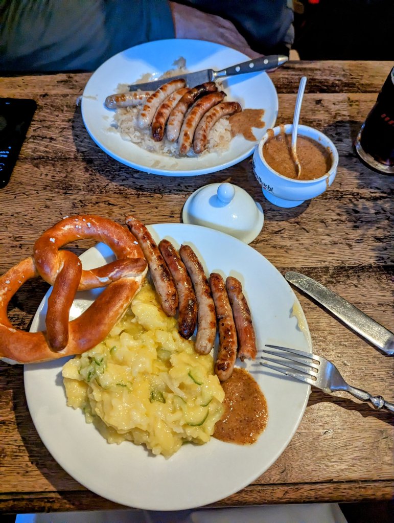 We departed Wertheim mid-day but once again had to pull over for an errant passenger who missed the boat for the 3rd time! We noticed Troy early on since he didn’t look like someone you might find on a river cruise. Long hair, flannel shirts, travelling alone. He’s a very friendly guy though perhaps a tad oblivious. He won over $300,000.00 gambling, called Viking and asked for the next available trip, and ended up in the top tier room of our ship. But he was terrible with scheduling and keeping track of time. Anyway, he was a topic of conversation for the whole boat mostly because he talked a lot and mostly about himself! That night we enjoyed a lively dinner of German sausages, pretzels and beer.