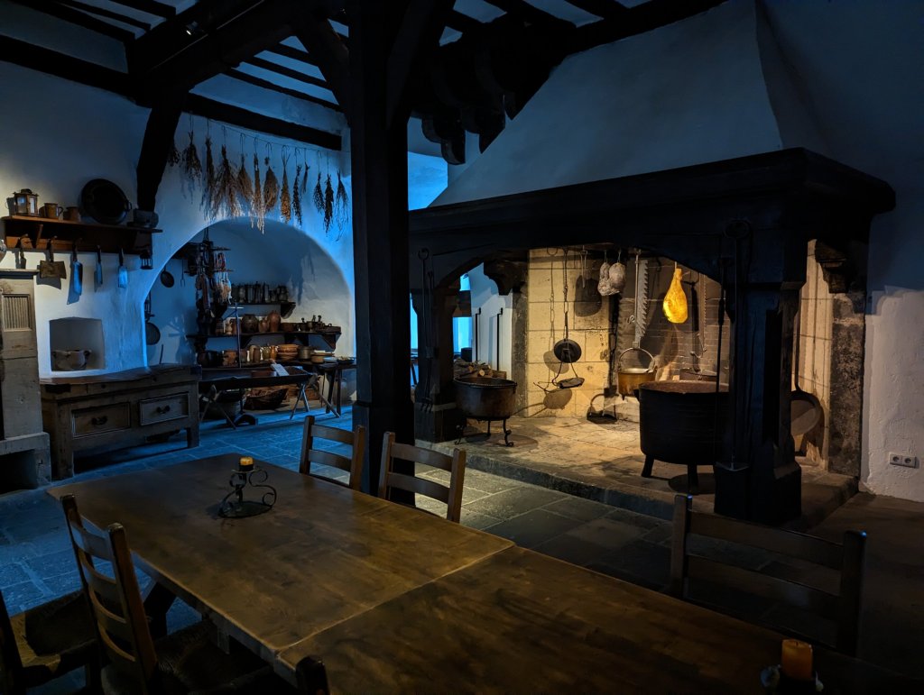 Marksburg is a remarkably well-maintained 12th century castle set high above Braubach on the Rhine. Currently owned by the German Castles Association, it was once captured by Napoleon when he fought the Holy Roman Empire and then gave the castle to the Duke of Nassau after whom Nassau, in the Bahamas, is named. The interior of the castle has recreated rooms such as a ‘kitchen’ and a bedroom, as well as toilets that overhang the exterior walls of the castle. There are very nice armor and armory museums as well as a torture room. Also within are current day living quarters (for staff, as I recall). Noted elsewhere on the trip was the hardships faced by occupants of the various tourist towns: lack of parking or driving, for that matter, on narrow cobblestone streets, difficulty commuting out of town to jobs, inability to renovate or upgrade historically preserved houses or areas, lack of play areas or space for families with children, among a few. Although it’s nice to visit these places many people wouldn’t and don’t want to live there.