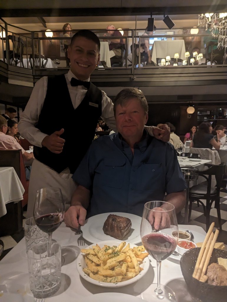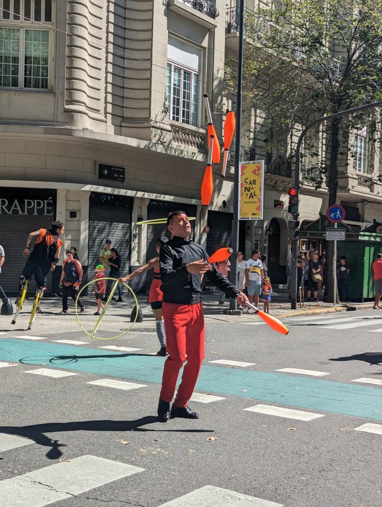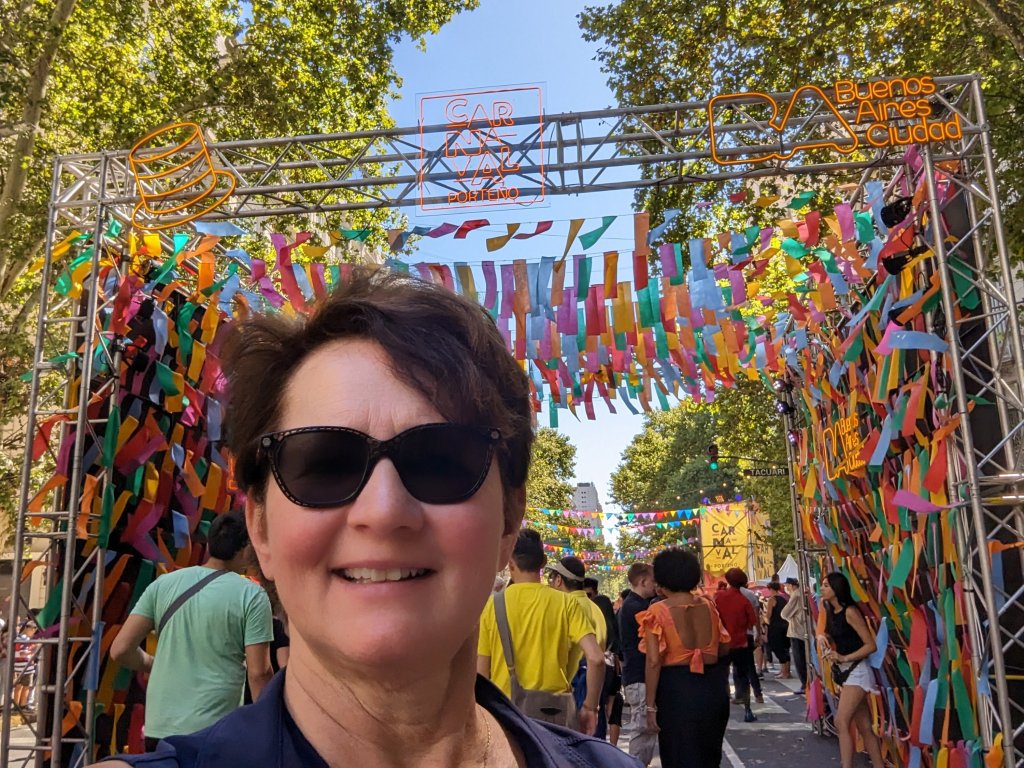 After our snack rest stop we headed back to Plaza Mayo to attend the Carnivale festival. We were on the early side, enjoying the first musical acts on stage and the street performers and kids spraying foam on everyone. That was enough fun for us as there was no need to get stuck in thick crowds. Marcello had assured us that Argentinians were largely vaccinated for Corona virus, he himself with Sputnik, Moderna, and Pfizer variations and that anti-vaxxing is not a thing there. Masks were largely absent. We strolled back to the hotel with sore feet and relaxed before dinner and worked on confirming the next day’s hotel (not relaxing, as it turned out). Logging 40,000 steps in a day and a half will come in handy in the near future. We felt compelled to celebrate our return to Argentina with red meat and red wine, successfully accomplished at restaurant Fervor in Recoleta. Tomorrow we head south to Ushuaia.