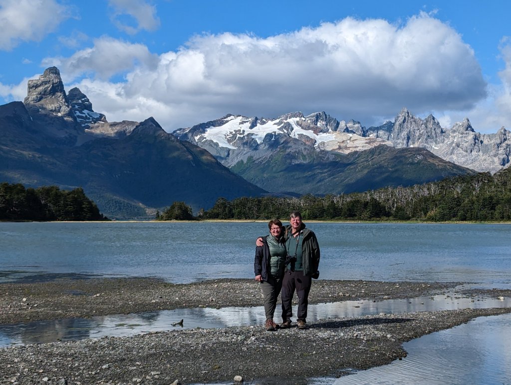 We then returned to the ship for breakfast and on to our next destination back north towards the Beagle Channel, Wulaia Bay, once home to the now extinct Yamanas. On the way there we spotted Minke and Humpback whales. So exciting! We hiked about 2 miles on the heavily forested island to about 600 ft elevation for some spectacular views of the bay. (There were other less vigorous options to walk). Then the rain set in and we returned to the dock. Along the way our guide told us about the beaver population, introduced to theoretically cash in on the booming industry in the 19th century but alas, the weather was ‘too warm’ as compared to Canadian winters and the pelts were of low quality, thus the beavers were released. Because there were no natural predators they are destroying the ecosystem. Back at the dock we were treated to hot chocolate with whiskey and then returned to the ship. Magically, our Zodiac was escorted by two dolphins (Peale’s) dancing alongside and splashing us when they breached. What an awesome day!