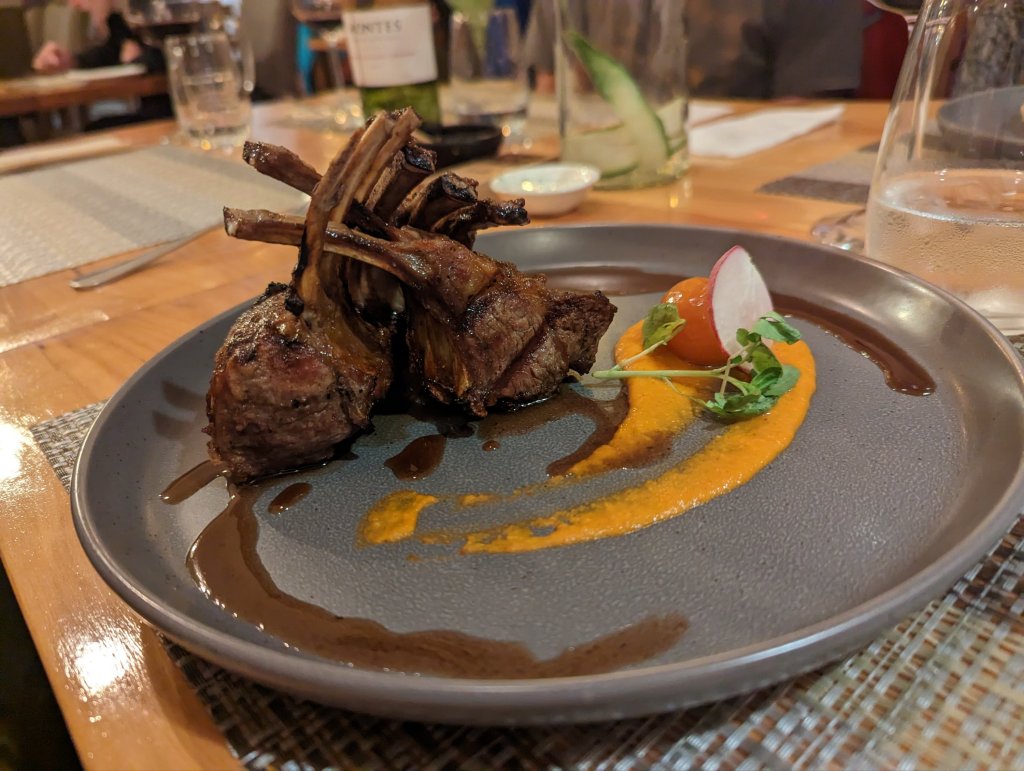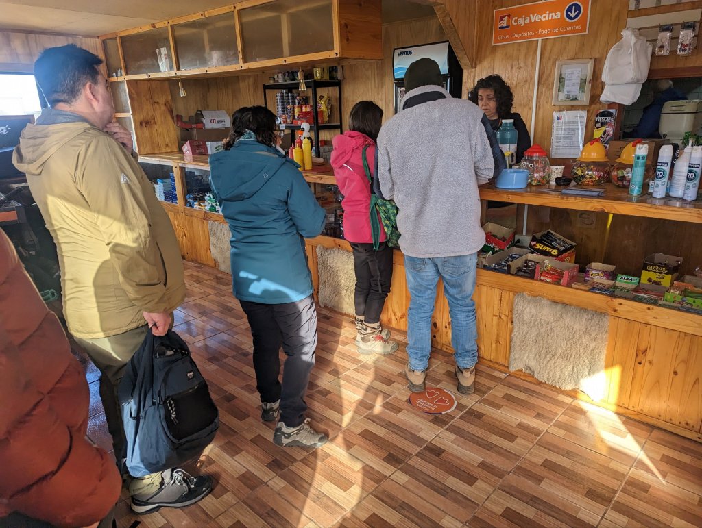 We left mid morning the next day for another, shorter, bus ride to Puerto Natales. Natales is the jumping off point for hikers and trekkers into the Parc Nationale Torres del Paine, where we were heading next. But first, a day in Natales, a former meat (sheep) processing, freezing, and shipping port with access to the Magellan Strait. The town was filled with hostels, eateries, bars, and gear shops, and with hikers in the uniform: boots, Patagonia jacket, backpack. The weather was still windy with intermittent rain but on occasion the surrounding mountains would peek through. Our mountain biking excursion was cancelled due to the weather so we meandered through town instead. We visited a very nice but tiny history museum highlighting the local indigenous people, now gone, and also the sheepherding and meat processing history of the area. We decided to walk back to the hotel, 3 miles outside of town, but regretted that when the wind, rain, and hail appeared out of nowhere. A stray dog accompanied us the whole way and raced after every car that drove by (“it’s not ours” we wanted to shout). After drying down and warming up we returned to town to meet with our friends Steve and Andrea who joined us for the rest of the trip. We met with our Chile Nativo hiking guide and then dined at Afrigonia, an African/Chilean fusion restaurant, having lamb, salmon, and the local delicacy, guanaco. Tomorrow, we hike!