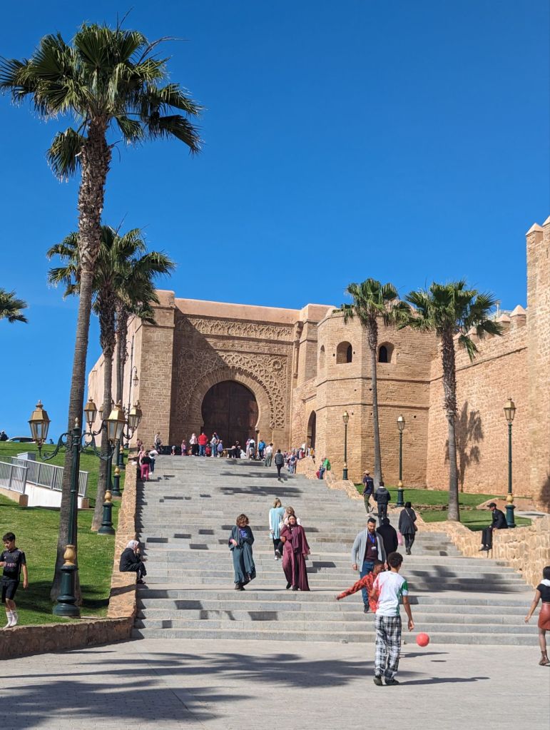 French colonial rule was established in the early 1900’s.  There’s definitely French influence here: architecture, infrastructure, and language.  Most people speak French and Arabic and maybe even Berber- the indigenous population (aka the Amazigh) though English is becoming more common.  Morocco achieved independence in 1956 under King Mohammed the V.  The name “Morocco” is derived from “Marrakesh” for ‘the land where the sun sets’ and is said to have ‘cold weather with a hot sun’.  Rabat is translated from the Arabic as “citadel”.