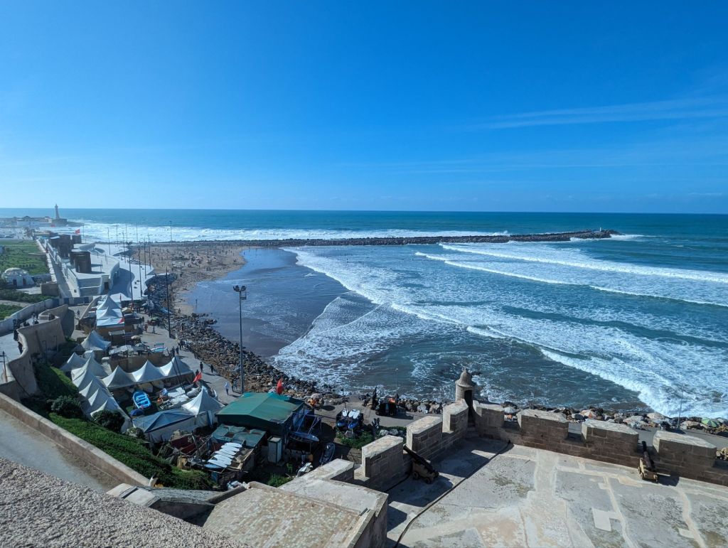 View of the Atlantic at the Bou Regreg mouth. Too shallow for today’s ships but great for surfing.