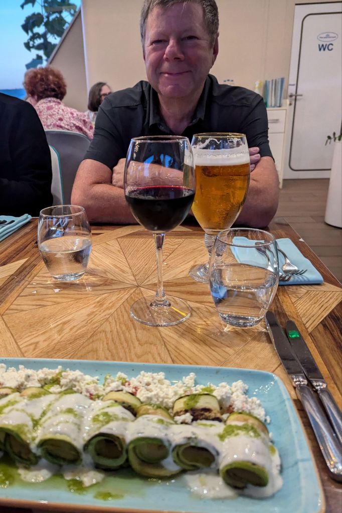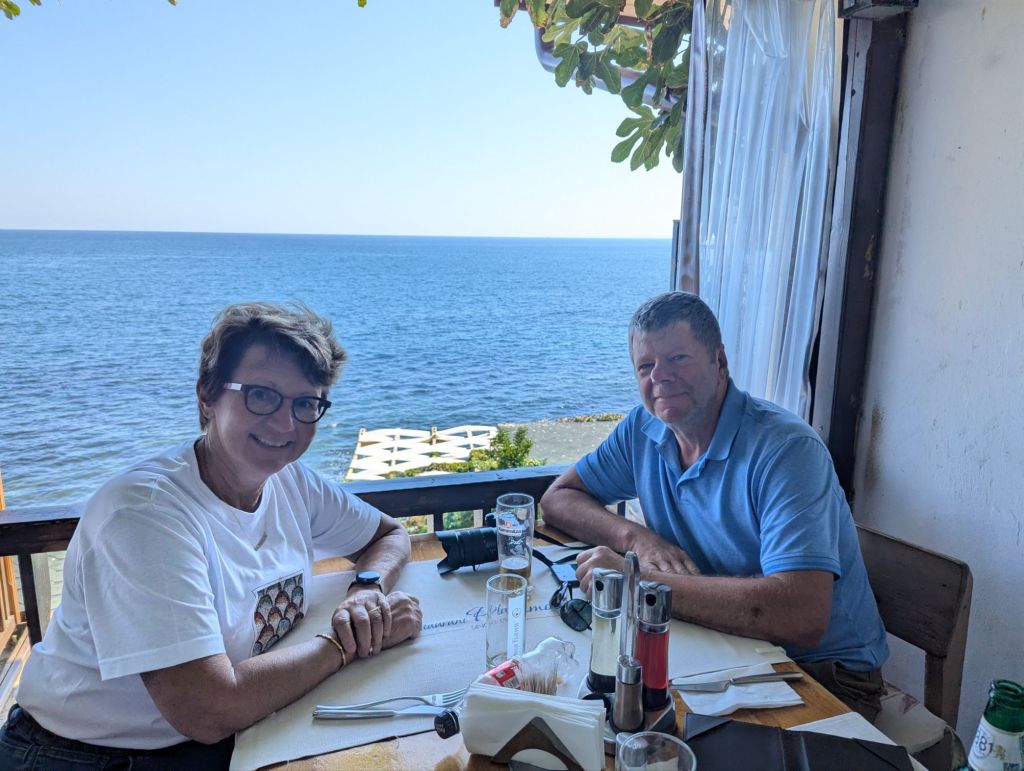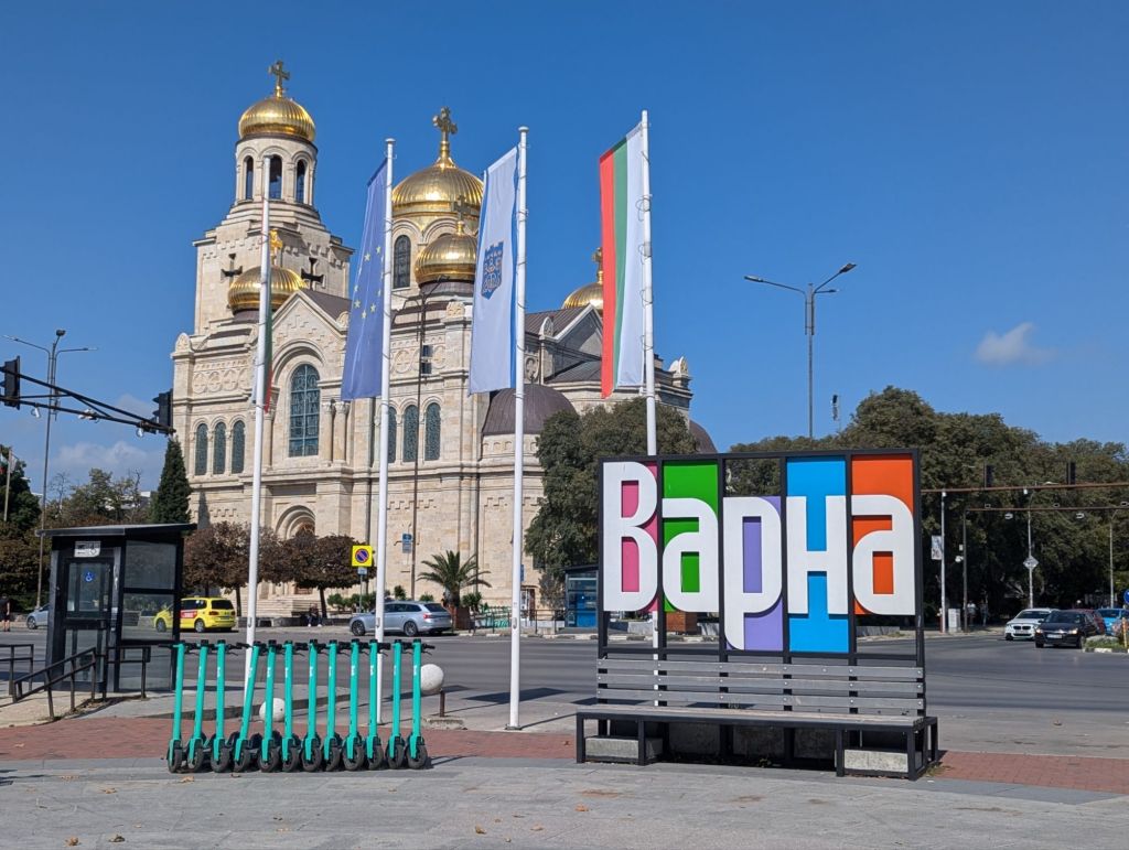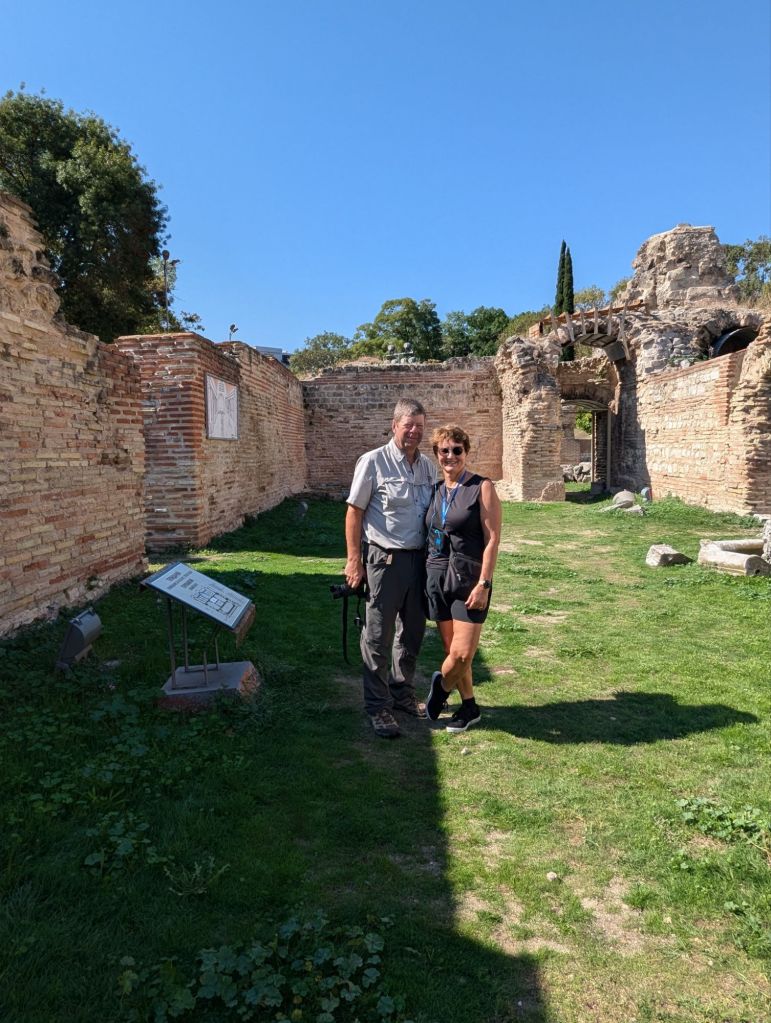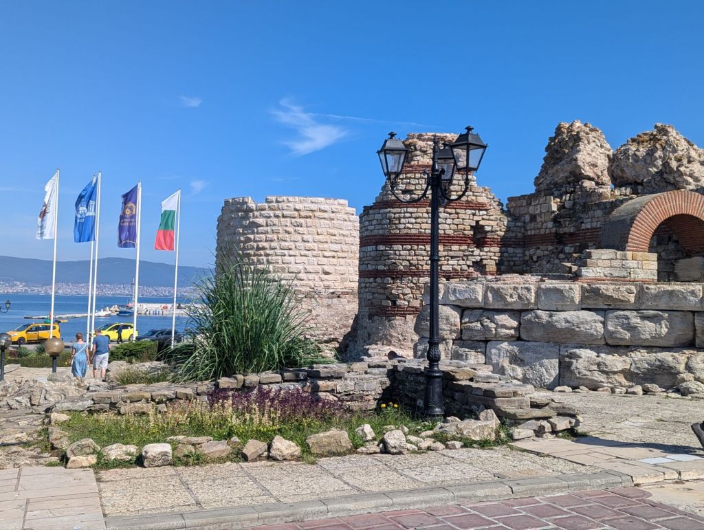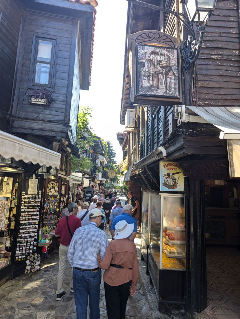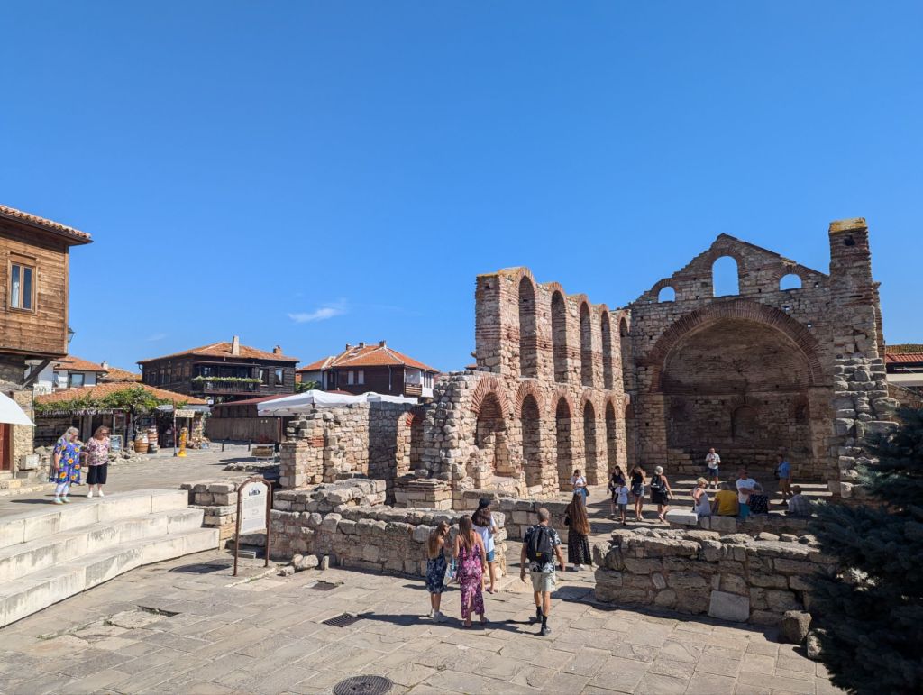 The weather has been splendid, sunny and in the 70’s to 80’s in Bulgaria in September. After visiting Sofia, Rila and remarkable Plovdiv (https://retirementadventureblog.com/2024/09/27/bulgaria-i-sofia-rila-and-plovdiv/) we headed east to the Black Sea. Our 3 hour drive (nap time!) took us to Nessebar, a seaside resort. The old town sits on a peninsula jutting out from the city with its high rise hotels and water parks. This cobble stoned, quaint little gem is surrounded by beaches and is dotted with many little churches, most in ruins, from the 10th century on. Otherwise there were abundant vendors offering gelato, souvenirs, leather items, and beautiful pastries. I had my first “taste” of the Black Sea, dipping my toes in the clear blue water. We wandered through the tiny old town then enjoyed lunch with another couple at a restaurant overlooking the sea with sailboats gliding by in the distance. Then onto Varna, our next destination.