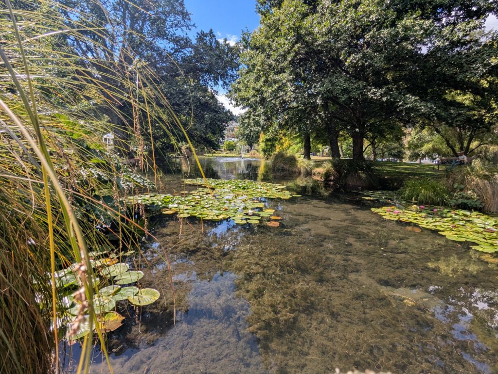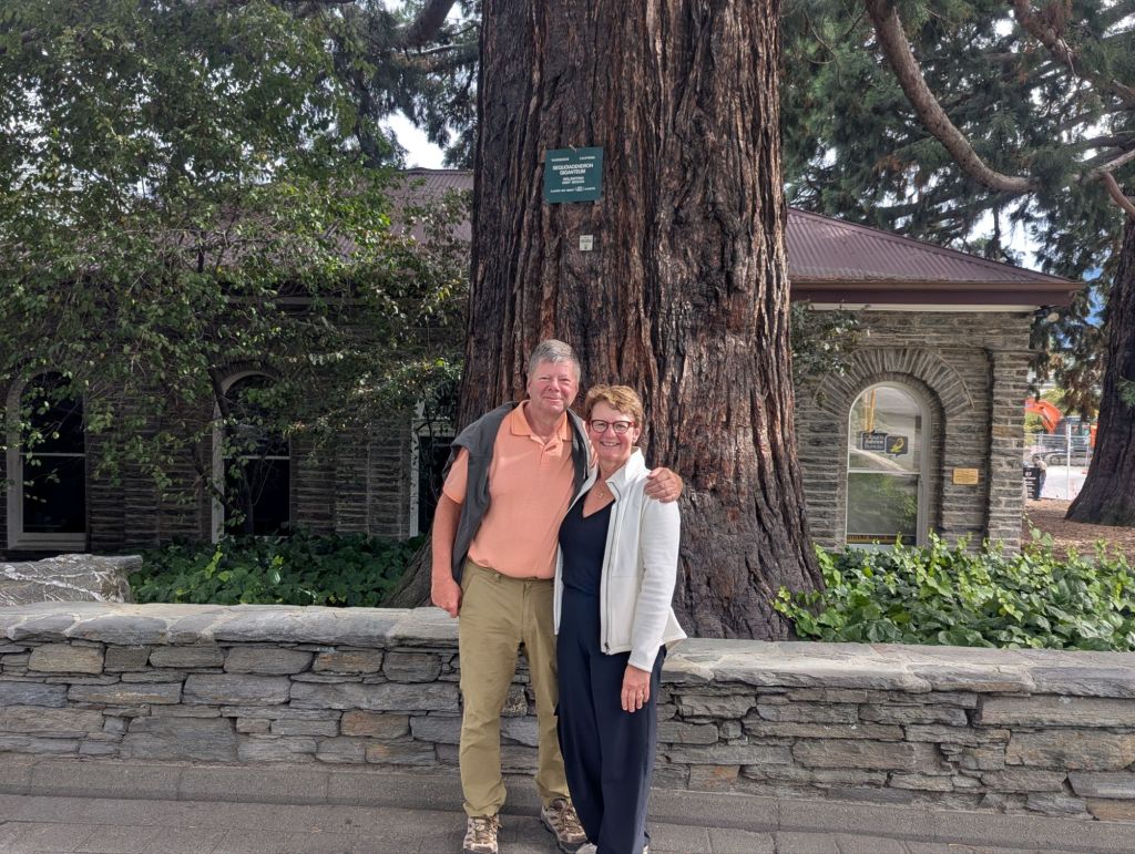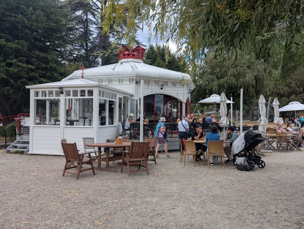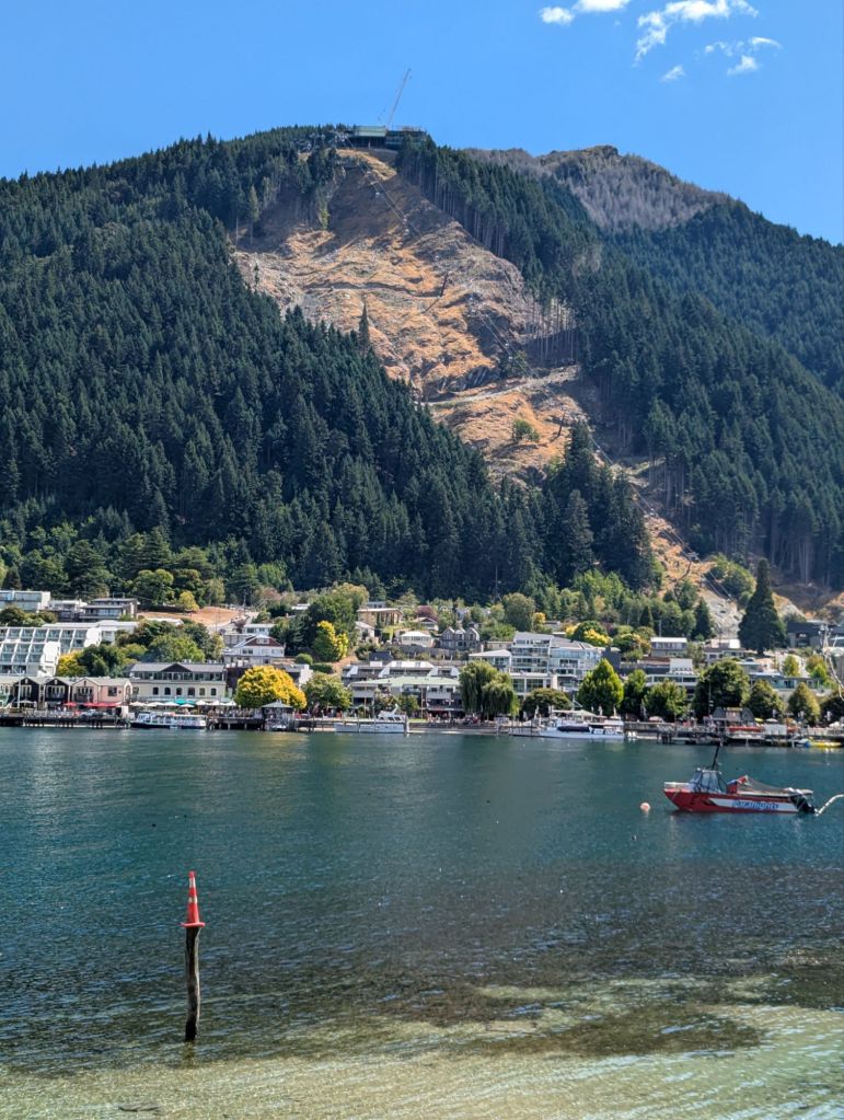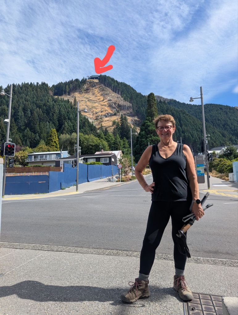 I had fish and chips at Speight’s pub then we strolled through town. Our first full day we decided to hike up to the Gondola Station as a prelude to our next two weeks here. We started right after breakfast on this 4 mi RT, 1435 ft elev, 2.5 h hike. The views of Q’town and Lake Wakatipu surrounded by the Remarkables mountain range were stunning. I was pleased to have made it; I’m not much for elevation anymore, going up or down. And the gondola was there as a backup plan, just in case. We freshened up at the hotel and then strolled through the Q’town Gardens. The views and the trees were stunning. A light beverage at the Bathhouse on the lake, with a Pimm’s and strawberries and cream, completed this British experience. We dined at the Grille that night and enjoyed the music of a pianist street musician nearby.