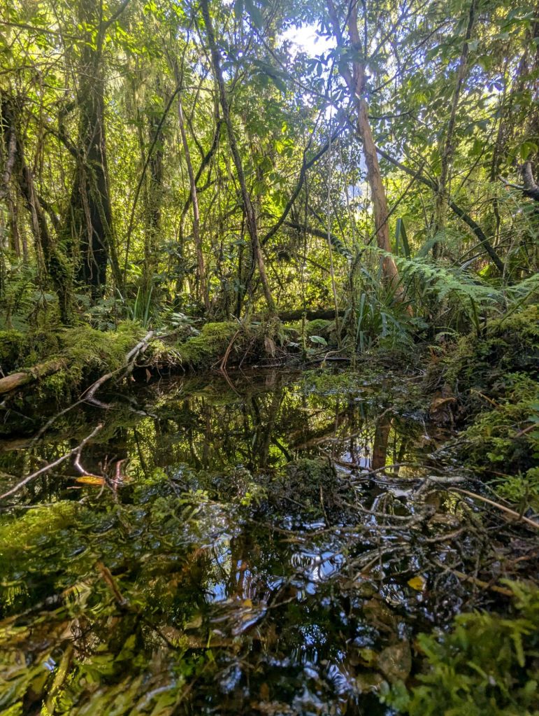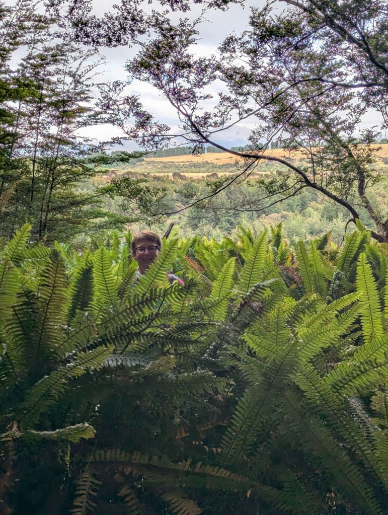 Day 1: Our group of 14 plus 2 guides drove about 2 hours south of Queenstown in our van to Te Anau and the Kepler track in the Southern Alps. Flat grazing fields for sheep, cattle, and red deer stretched for miles. Red deer were brought here for hunting in the 1800s. When they became severely overpopulated due to abundant food and lack of predators in the wild, government subsidized bounties and intensive hunting efforts began. In later years (1960s) hunters would jump from helicopters to wrestle deer to the ground to capture them for farm-raised venison. The better heli pilots had a great business, the lesser ones, well, nobody knows. Back to hiking: we parked the van and hiked on the Kepler track into the hut on Lake Motarau, a 7 mile roundtrip on beautiful trails amongst moss-laden beech trees, Lance wood, and giant ferns. It was a magical scene. Later we dined at the Fiordland theatre restaurant in touristy Te Anau. The Fiordland cinema was built to show the film of helicopter footage shot in the area when no one else would show it. The documentary featured stunning scenes of the fjords and mountains in the area. Dinner was delicious: steak and lamb- I’m in cholesterol heaven! We stayed at Radford’s on the Lake, a new little hotel with efficiencies right on Lake Pukaki.