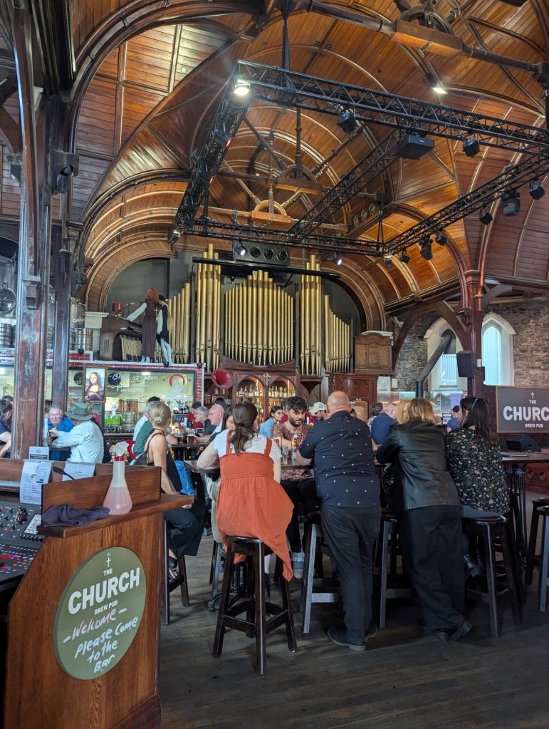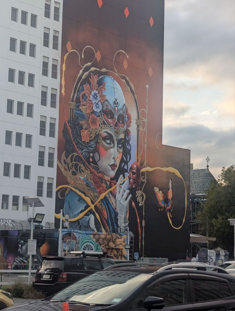 Day 5: Lake Tekapo was about an hour drive from our Mt Cook hotel. We stopped and hiked up and around the peak of Mt John to stretch our legs, then continued onto probably my favorite place, the town of GERALDINE!!! Greg and I scurried through this cute retirement village looking for my namesake businesses before lunching at trendy, healthy Barkley’s. I wish we could have more eateries like this back home! We continued on to Christchurch on the East Coast in the Canterbury Plains, now out of the Southern Alps. Sheep and cattle farms and other rural activities lined the back roads into Christchurch. Christchurch itself is a nice little city with lots of shopping and restaurants. There was a lot of new construction, although some was likely reconstruction due to the catastrophic earthquake in 2011. The Anglican cathedral was among the casualties. A very young population was evident as we walked around the city and then dined at the Church, a brewery in a former church. *Edited to add: our van trailer was broken into overnight but luckily it was empty or they didn’t want what was in there. It’s a typical city in the end.