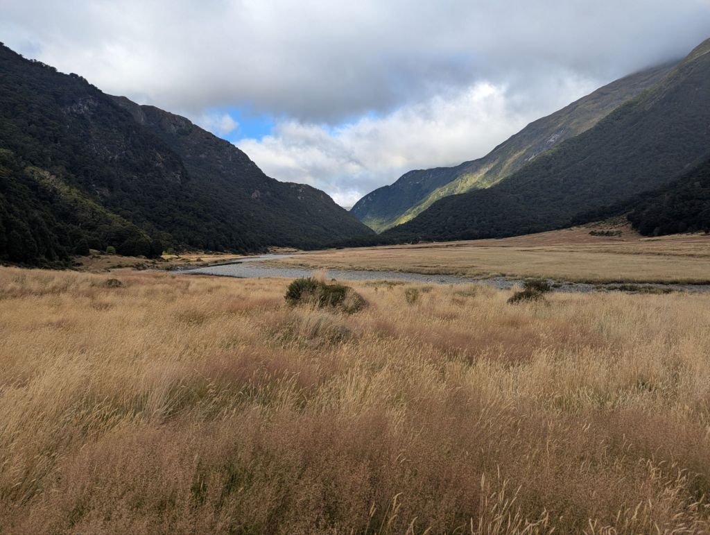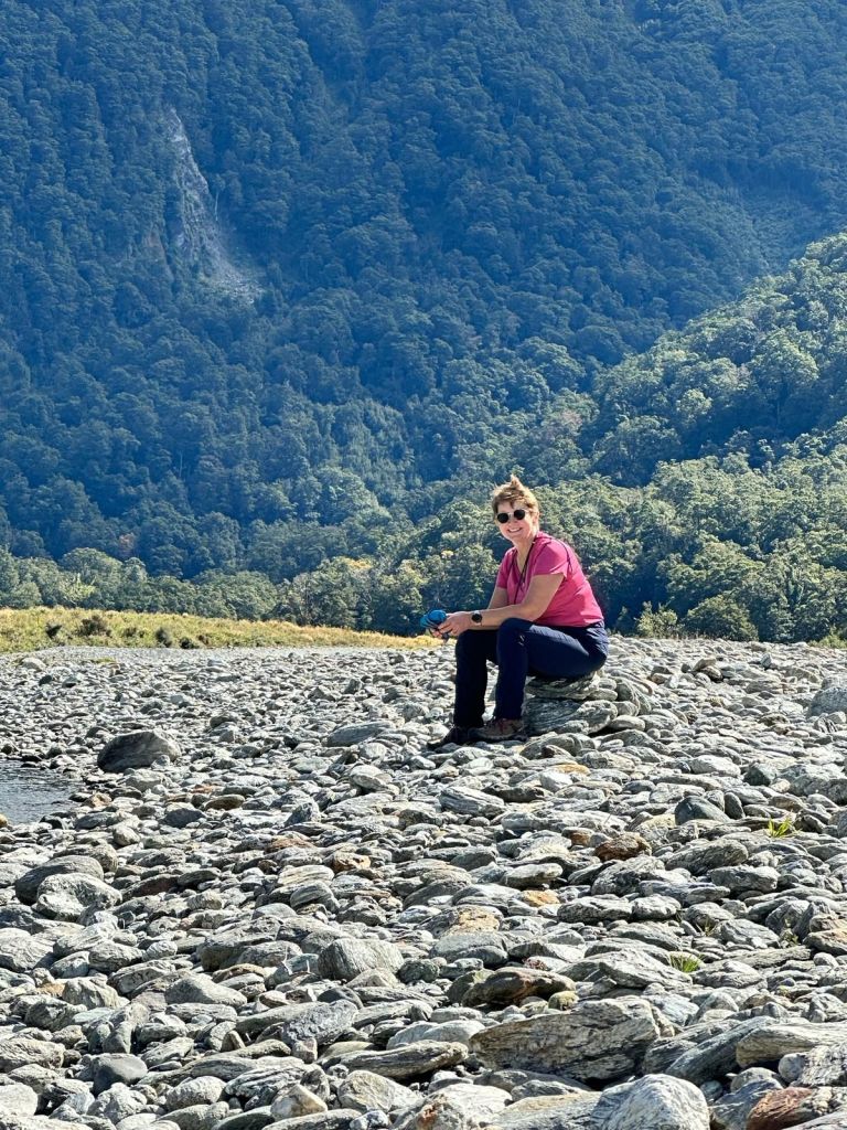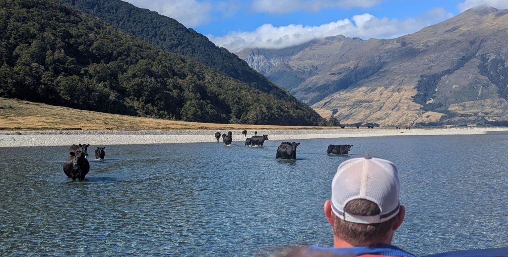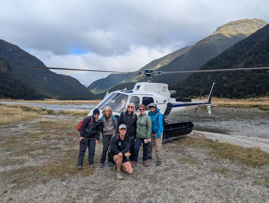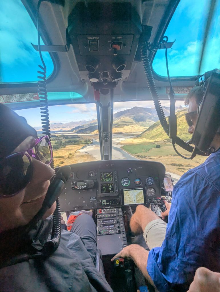 From Wanaka we drove back up to Makarora in the morning. An amazing day awaited: we were helicoptered into Siberia hut on the Wilkins River valley in the Mt Aspiring National Park. After another thrilling chopper ride through mountain passes and along mountain ridges we hopped out and began hiking. The weather was cloudy on high but sunny and warm on the ground. We tramped through golden meadows along the glacially fed river then hiked up and over a mountain shoulder to a valley meadow further downstream. It was a challenging yet relaxing hike. The hardest part was the constant descent of about 1500 ft over tripping rocks and roots which was tough on my knees. Did I mention I’m looking at TKR (total knee replacement) possibly later this year? I’m mostly pain free but have limited flexion with bone spurs and no cartilage. I’m thrilled to have been able to travel and do this trip. Thank goodness for my trusty hiking poles (this Boomer’s choice of name for “cane”). We had plenty of time to traverse the track with lengthy snack rests on mossy logs and a particularly tasty sandwich lunch provided by Ryan and Cameron. At the end of the hike we were greeted by longer legged, faster hiker Ryan who had beers cooling in the cold river waters and also by sand flies and bumble bees. The views were glorious as we skipped rocks and swatted bugs awaiting our jet boat pick up which returned us to our van downstream. The jet boat was fast and had us wetted with quick turns and spins. The river depth was quite low with the summer’s drought but the boat skimmed over the shallow water past wading cows and other hikers to our journey’s end. Returning to Wanaka we were treated to one final dinner together in one of the trendy Italian restaurants. Salute!