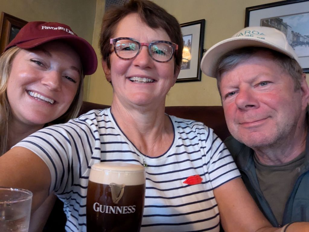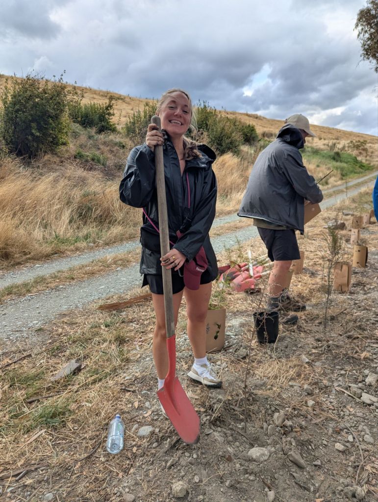 After all these weeks of spectacular weather, the next day, St Patrick’s Day, dawned with clouds and spritzing rain. Our flight and excursion to Milford Sound were cancelled as they were getting 5 inches of rain on the coast. Pivoting, Greg and Christina hiked up the Gondola path that Greg and I had done our first day here, then took the gondola down. I stayed back for reorganizing and catching up on laundry. We then headed to one of the many Irish bars in Q’town, Pog Mahones for Irish stew and Guinness. Later the Irish bars would be crowded and crazy loud. We arranged to take the coal fired steamer ship TSS Earnslaw down Lake Whakapitu to Walter Peak. The weather was cloudy with spitting rain but we enjoyed the breezy front deck ride. We also watched the crew shovelling coal into the engine. Walter Peak farm was a beautiful Victorian house and sheep farm built by the McKenzie family set on an English garden location with the mountains overhead. It’s now a tourist destination offering dinners and walking yours. We took the Eco tour with Charles, a quiet French gardener, who showed us the veggie gardens and various trees. We then enjoyed “tea” in the garden shed. “Tea” is an understatement as the table was covered with scones, charcuterie, cheese, crudite, and sweets all prepared from the gardens. The chef was sweet and a little goth and totally charming. Charles then led us to another part of the property where we planted more native trees (my third tree in NZ as there was another planted on Mou Waho). It was a perfect afternoon as we headed back on the steamship Earnslaw again braving the elements on deck for the dramatic views. We headed out to dinner at the Bunker, barely able to fit any more food in but also too late to cancel the reservation. I think the waitress noticed.