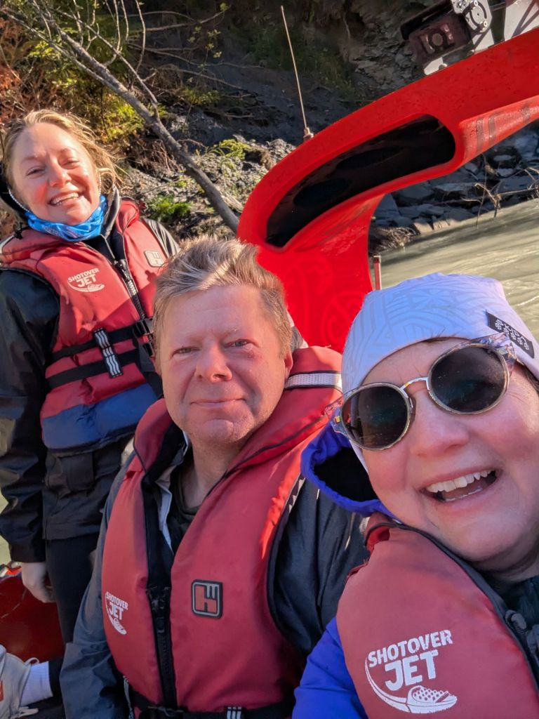 Our final morning in New Zealand we squeezed in a jet boat ride on the Shotover River as a replacement for the previous day’s cancellation. Fast and thrilling, but chilly, the boat driver raced the boat through narrow river canyons. The boat slid close to the canyon walls and 360’d in wider river areas. There was lots of whooping and gasping on the boat, mostly from me. So fun! After a trip to the convenience store for Tim Tams (chocolate coated chocolate cookies!) and a quick change at the hotel (QT Queenstown) we headed to the airport. Goodbye lovely Q’town and New Zealand!