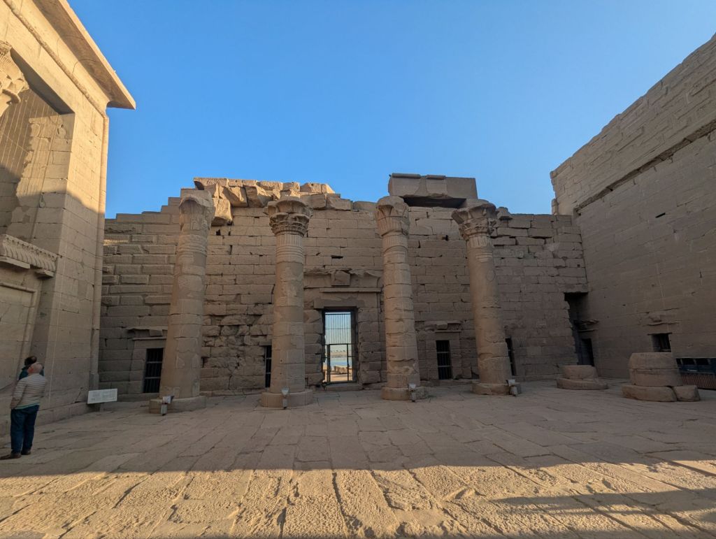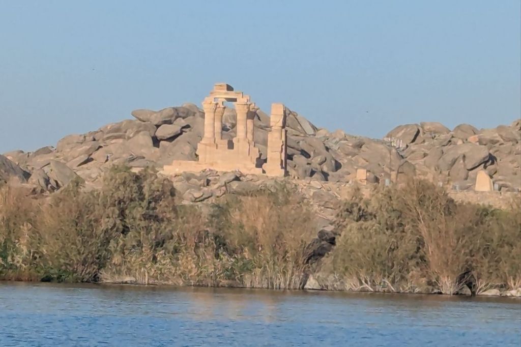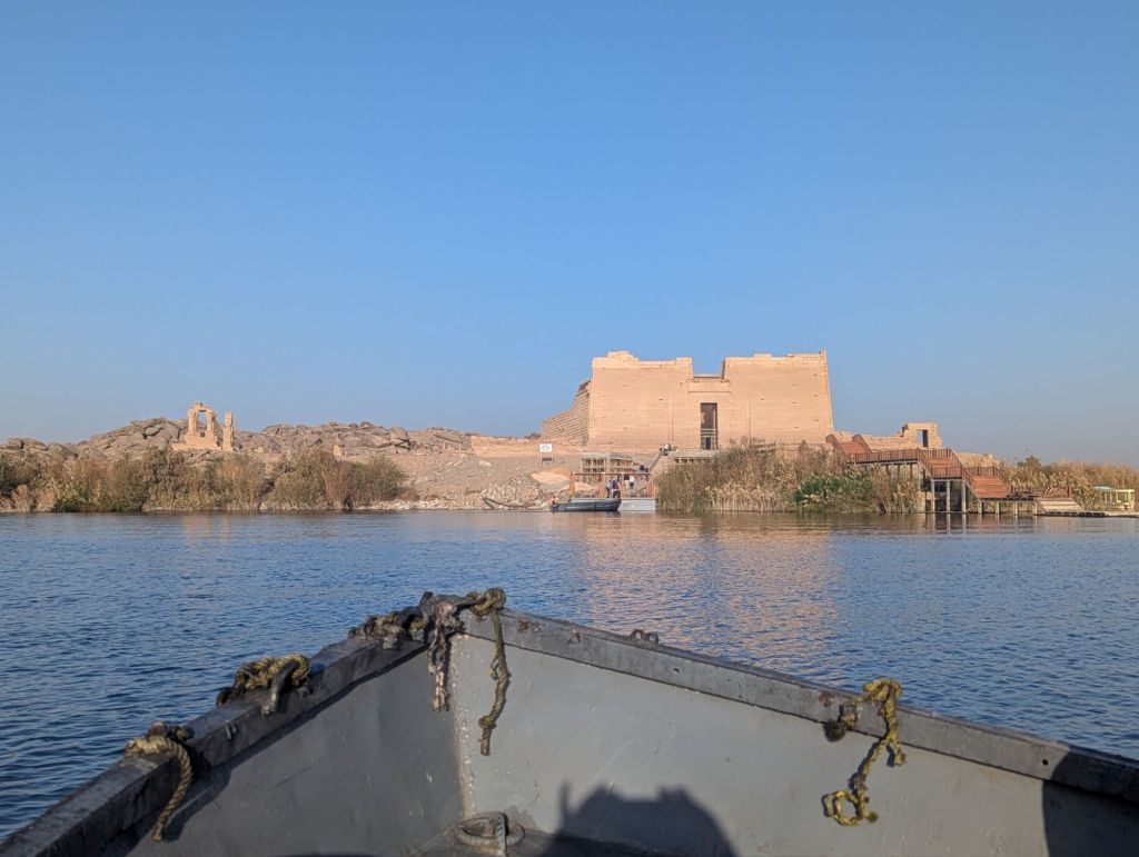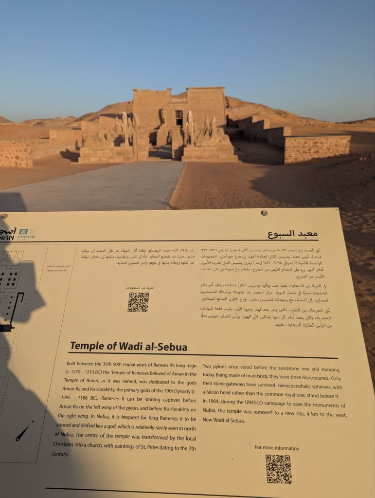 Our actual itinerary on Lake Nasser: Our itinerary: we sailed past Kasr Ibrim (Nubian, in its original location), visited Amada (oldest temple on Lake Nasser, moved wholesale as one piece), Wadi el-Seboua (Dakka). Next day: New Kalabsha (Egyptian and Greek), Philae (to be continued). We ate constantly, were treated like Pharaohs and Queens by the wonderful crew of Omar al Khayam, and enjoyed our idyllic sail through history.