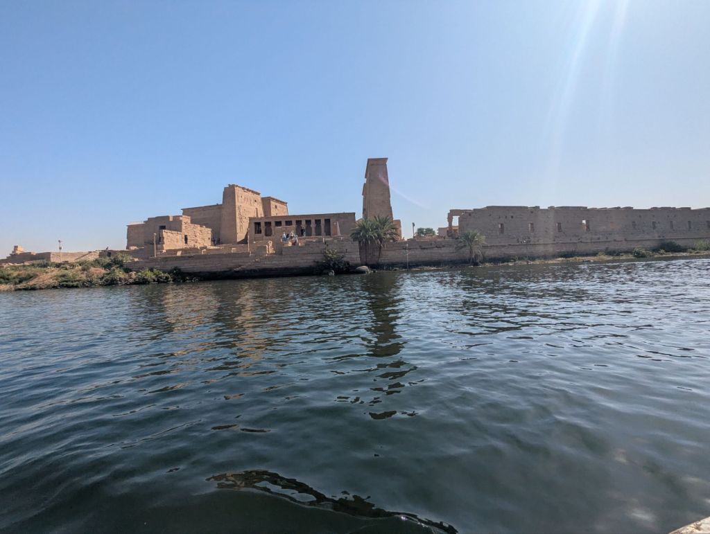Our Lake Nasser cruise ended at the Aswan High Dam. The High dam was constructed over 10 years in the 60s with financial assistance from the USSR (without US or Western Europe assistance due to nationalization of the Suez Cana years prior among other reasons). A monument to the partnership stands nearby. The High dam is the 3rd largest dam in the world, after the Hoover and Yangtse dams, and provides 60 percent of Egypt’s electricity. Just a few km upstream is the smaller Aswan dam aka the “English” dam built in 1902. This older dam alleviated the annual flooding of the Nile which could be devastating yetprovided the fertile silt the farmers depended on. Also, Nubian villages and, of course, temples were submerged. In the interest of progress…