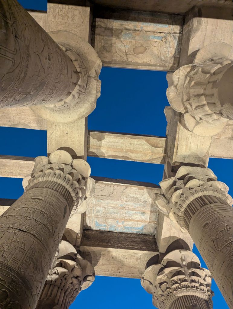 The Temple of Philae was built to honor Isis, the goddess of love and beauty. Built around 500BC, the temple was partially submerged for 6 months annually when the Nile flooded. For centuries! Then it was threatened with complete and permanent submersion with the High Dam construction but was not on the original list for relocation. It later was considered too valuable to lose so it was relocated to another island close by. This site is significant as the last known actively used temple, til around 500 AD. The carvings inside, those which hadn’t been destroyed by the early Christians who later used the temple as a church, were stunning.