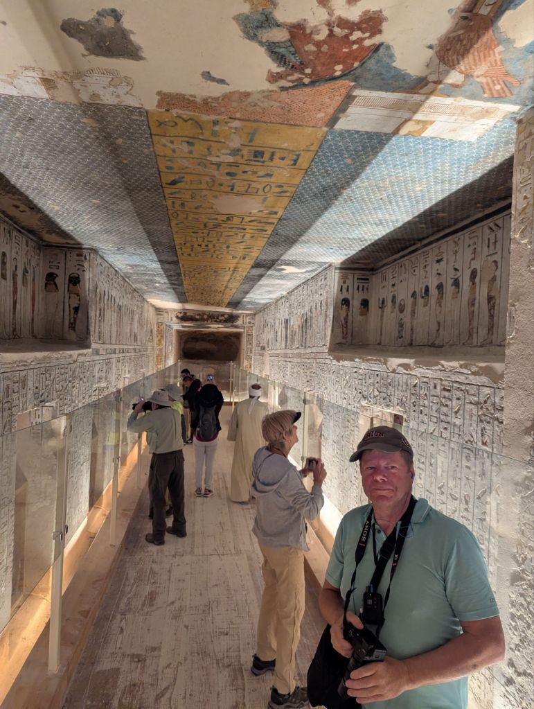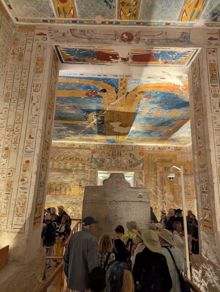 Ramesses IV’s tomb was the largest, Tut’s the smallest. Upon ascension to the throne, pharaohs immediately began constructing their tomb showing the importance they placed on eternal life. Tut died young, 19 or 20 years old, with less time to prepare his tomb was smaller than most. Luckily, his tomb was below another so grave robbers were unaware of the treasures beneath. Tombs were built in this valley when grave robbing was popular at the pyramids; apparently that didn’t work to keep them away here. Imagine if tombs were undisturbed? Oh, the treasures!!! The valley is guarded these days and archeological digging continues for 2 or so pharaoh tombs as yet undiscovered.